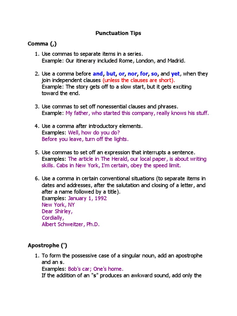 A Lesson In Punctuation How To Use The Comma 1 Use A Comma