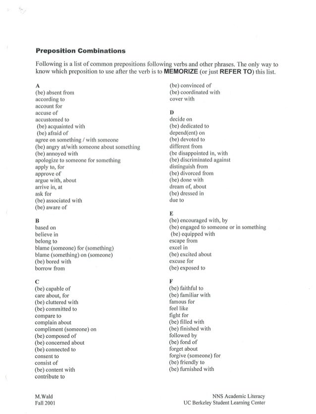 Prepositions Cheat Sheet Ego Main The Chicago School Of