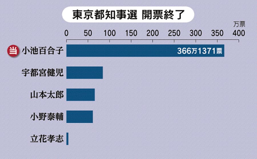 小池氏が都知事再選 コロナ下の選挙戦 圧勝366万票 日本経済新聞